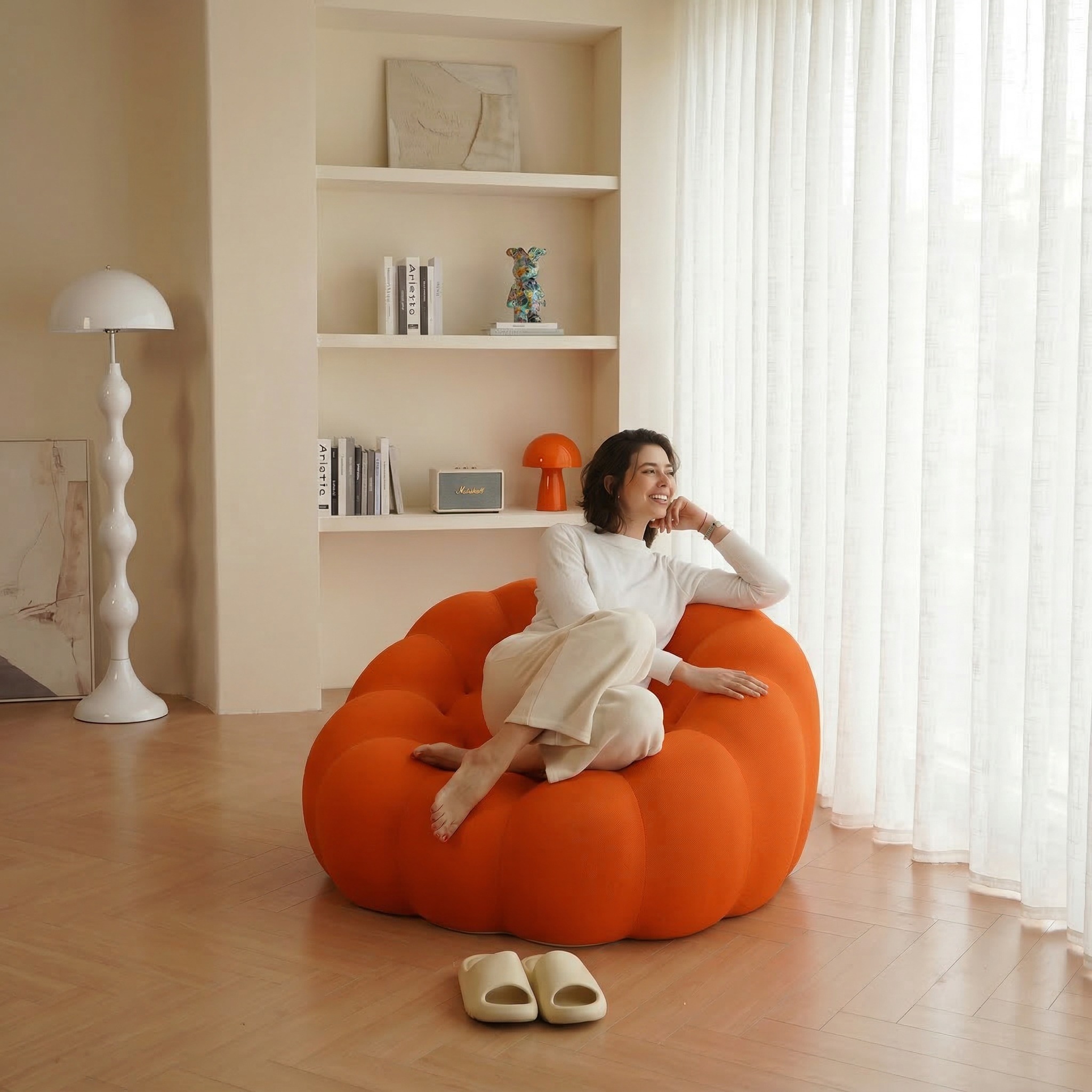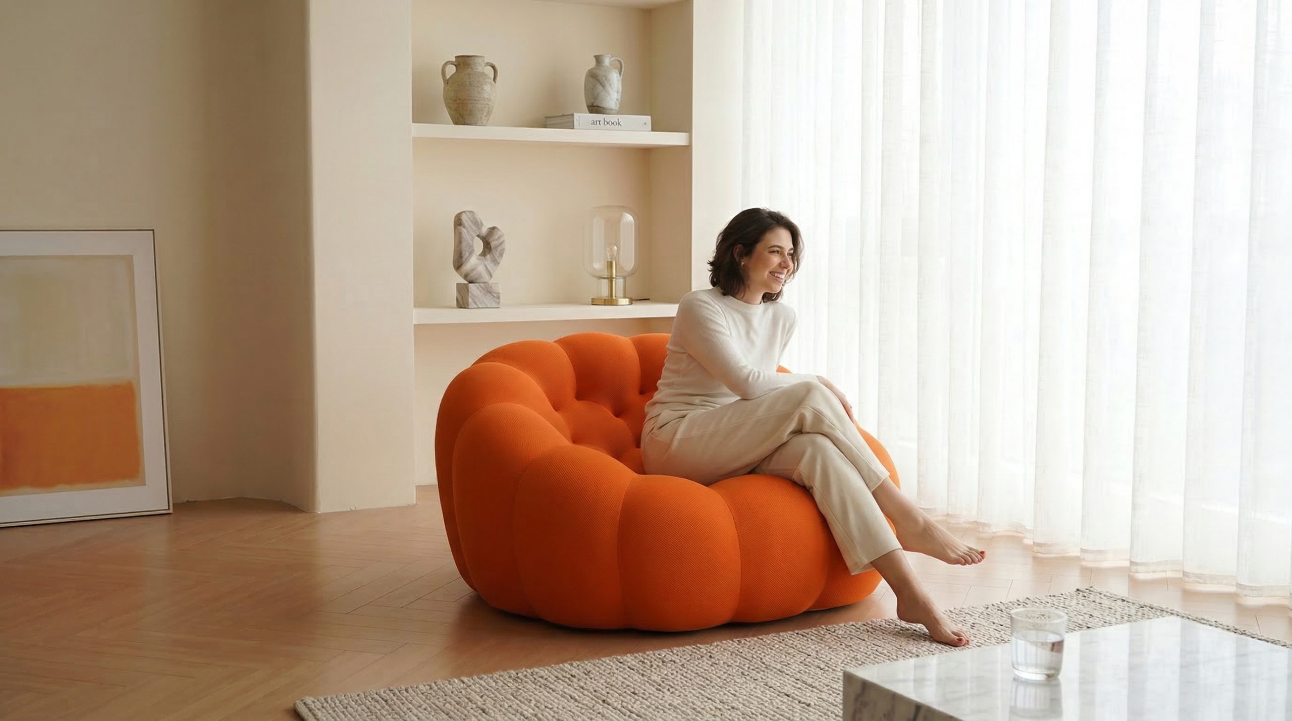 Fotoliul Puffa, realizat din spumă poliuretanică de înaltă densitate, concepută pentru a fi comprimată. Folosim tehnologii de comprimare avansate, păstrînd calitatea și confortul.